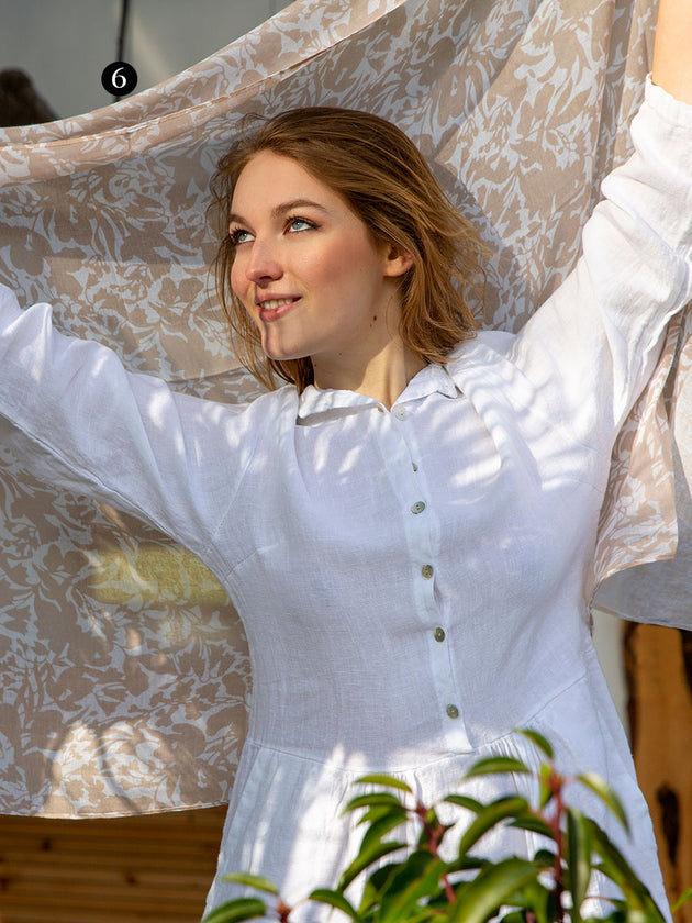 3. Leichter Schal mit floralem Muster für Damen und kontrastierenden Enden in Taupe