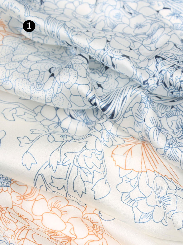 1. Damen Blumen Seidenähnlicher Leichter Schal mit Rand in Blau