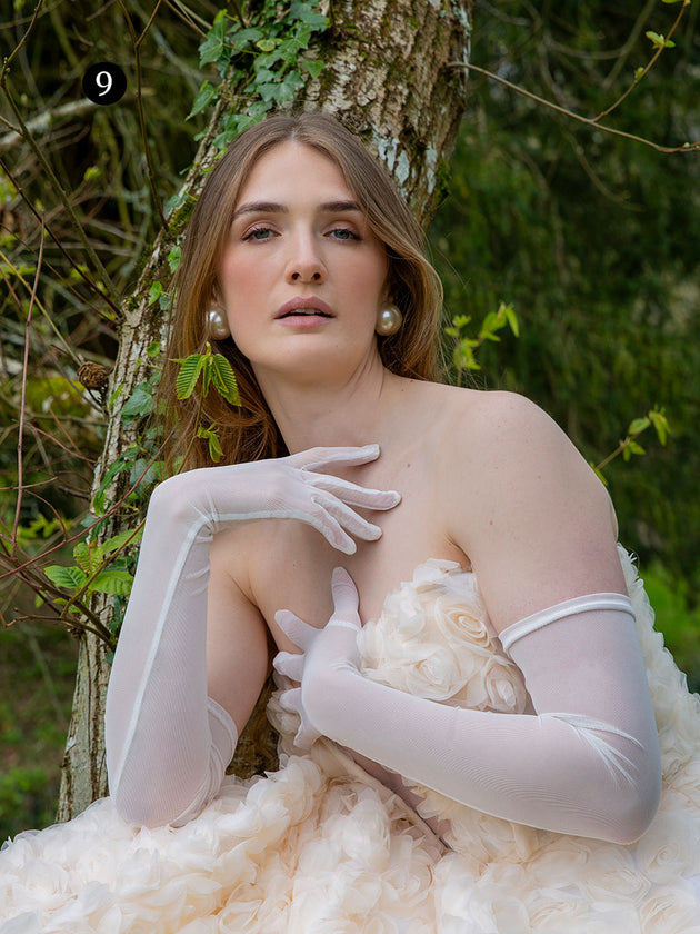 Weich und durchsichtig ist das, was diese Frühlingssaison verlangt. Ob schlicht oder gemustert, hüllen Sie sich in traumhafte Schichten aus Tüll und Spitze, um Ihrem Look für warmes Wetter einen schwebenden, nebligen Filter hinzuzufügen. Ideal für wärmeres Klima, ist Tüll ein feines, atmungsaktives Material, das immer anmutige Eleganz bietet. Es dominiert die Laufstege, aber seine Tragbarkeit ist für alle sehr zugänglich. Es funktioniert wunderbar als kleine, subtile Ergänzung zu Ihren Outfits – sogar zu lässiger Kleidung – oder kombinieren Sie verschiedene leichte Texturen, wie Spitze, für ein dynamischeres und detaillierteres Erscheinungsbild, das begeistert. Suchen Sie nach schlichtem Tüll für einen einfach süßen Look oder entscheiden Sie sich für gemusterten Tüll wie gepunktete oder florale Designs. Vergessen Sie nicht die Feinheiten und den zarten Look klassischer Spitze – die Möglichkeiten sind endlos. Wir lieben Lila, unsere gepunkteten langen Tüllhandschuhe (gesehen in Schwarz) für einen Hauch von Glamour oder halten Sie es kurz und süß mit Caroline, unseren über dem Handgelenk liegenden gepunkteten Tüllhandschuhen mit einem markanten Bündchen (auch gesehen in Schwarz). Alternativ verwöhnen Sie sich mit Tiana, unseren über dem Ellbogen liegenden Tüllhandschuhen für einen anmutigen und eleganten durchsichtigen Look. Machen Sie durchsichtig zu Ihrem nächsten Stil-Basiselement in diesem Frühling.